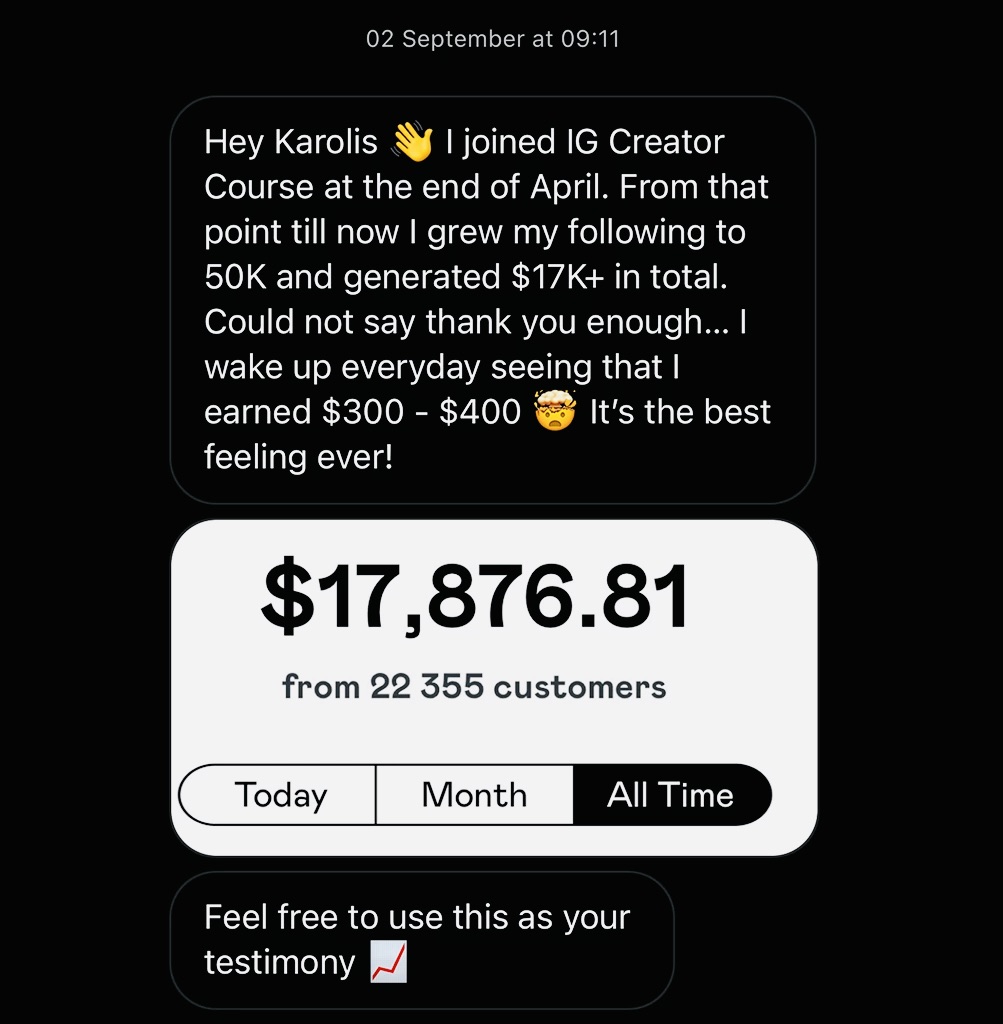 In a few months, I grew my Instagram to 400K+ followers, generating $250,000+ with my Content-To-Cash method.